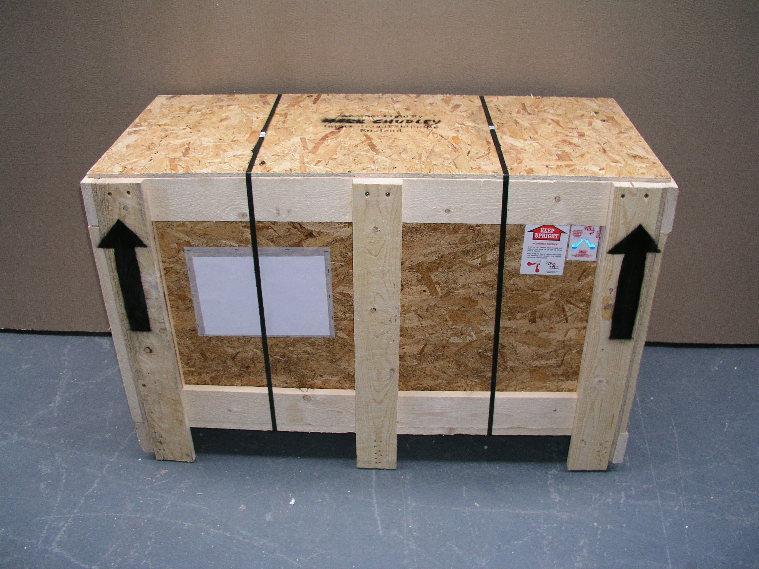 - Our cratemaker then adds ends, packs out any remaining gaps, secures a top, band the crate shut for added security, then finally labels for transport.